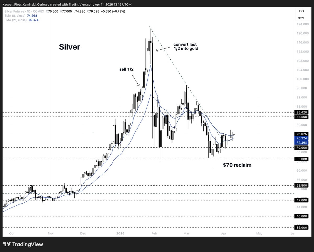 Sharp moves tend to come with elevated volatility. That means the potential reversal is not only larger in magnitude, it is happening on a position that has grown relative to your account. The same trade that started as 10-20% of your book may now be double. The swings that felt manageable at entry is now twice as violent. Nobody is built the same way, and for some, holding through that is natural. For others it is too much. Fortunately there is a solution to manage your emotions, and it’s as old as trading itself: trimming / taking some profits off the table.