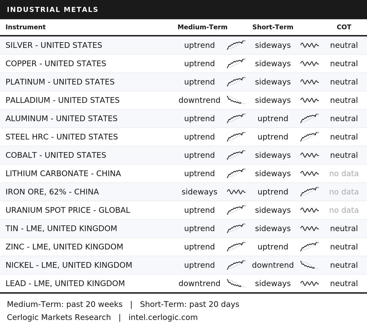 • COPPER – UNITED STATES: negative ➝ neutral
