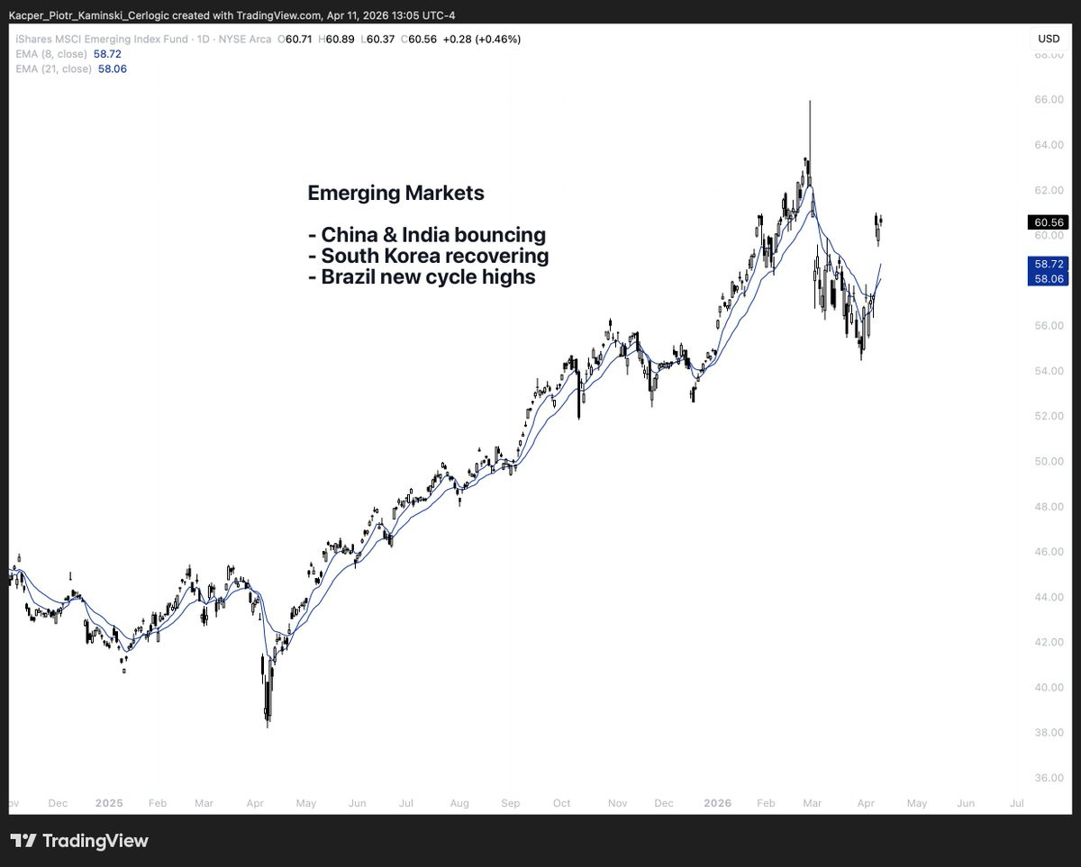 • MSCI EM – EMERGING MARKETS: sideways ➝ uptrend
