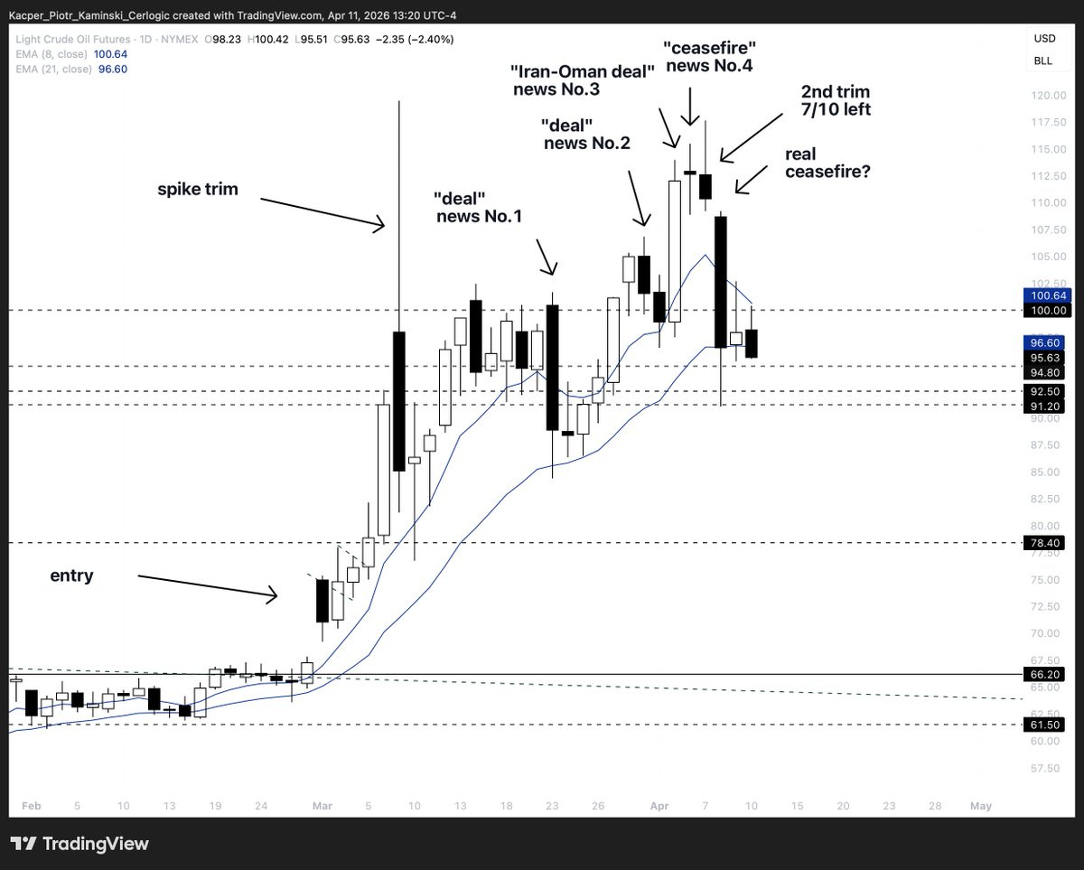 The way I have approached this is by anchoring my risk management to one number, as percentage risk relative to account size. Take a simplified version of the recent oil trade. We entered long at roughly 10% of the account, with a stop set so that if the position dropped to 9%, the trade was done, thesis invalidated, move on. Clean.