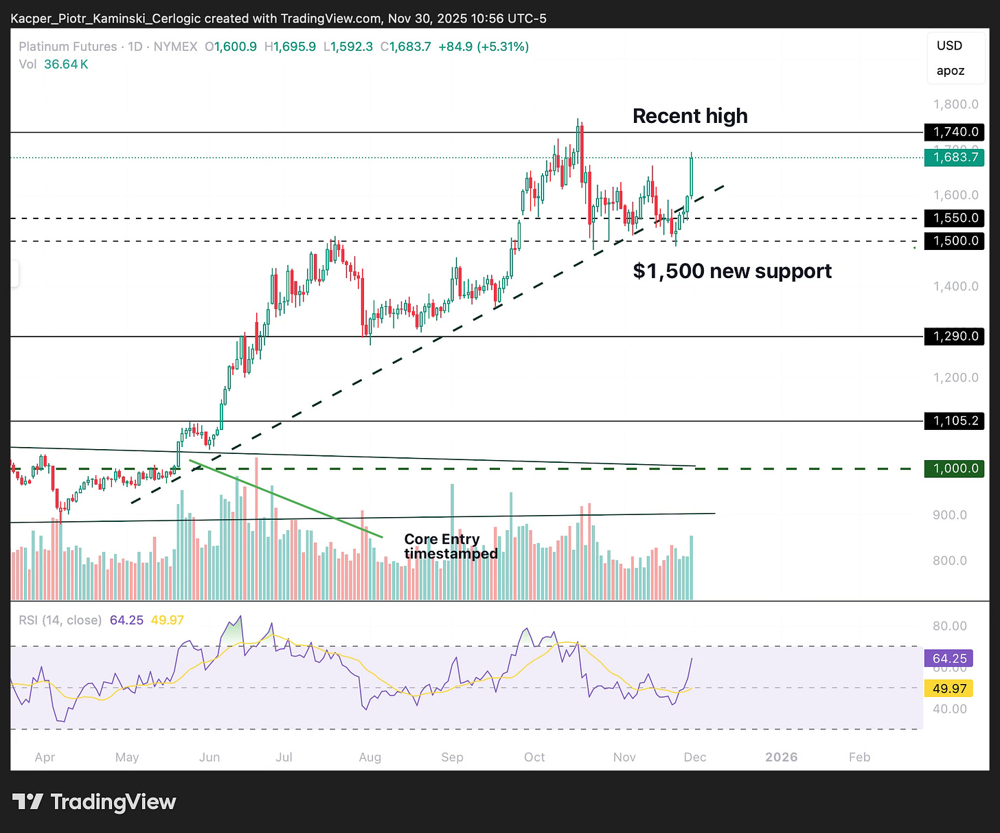• PLATINUM – UNITED STATES: Sideways 🟨 ➝ Uptrend 🟩