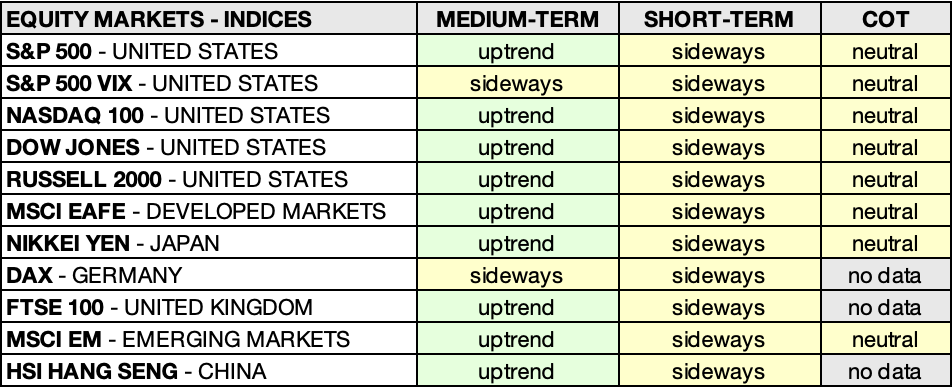 EQUITY MARKETS – INDICES