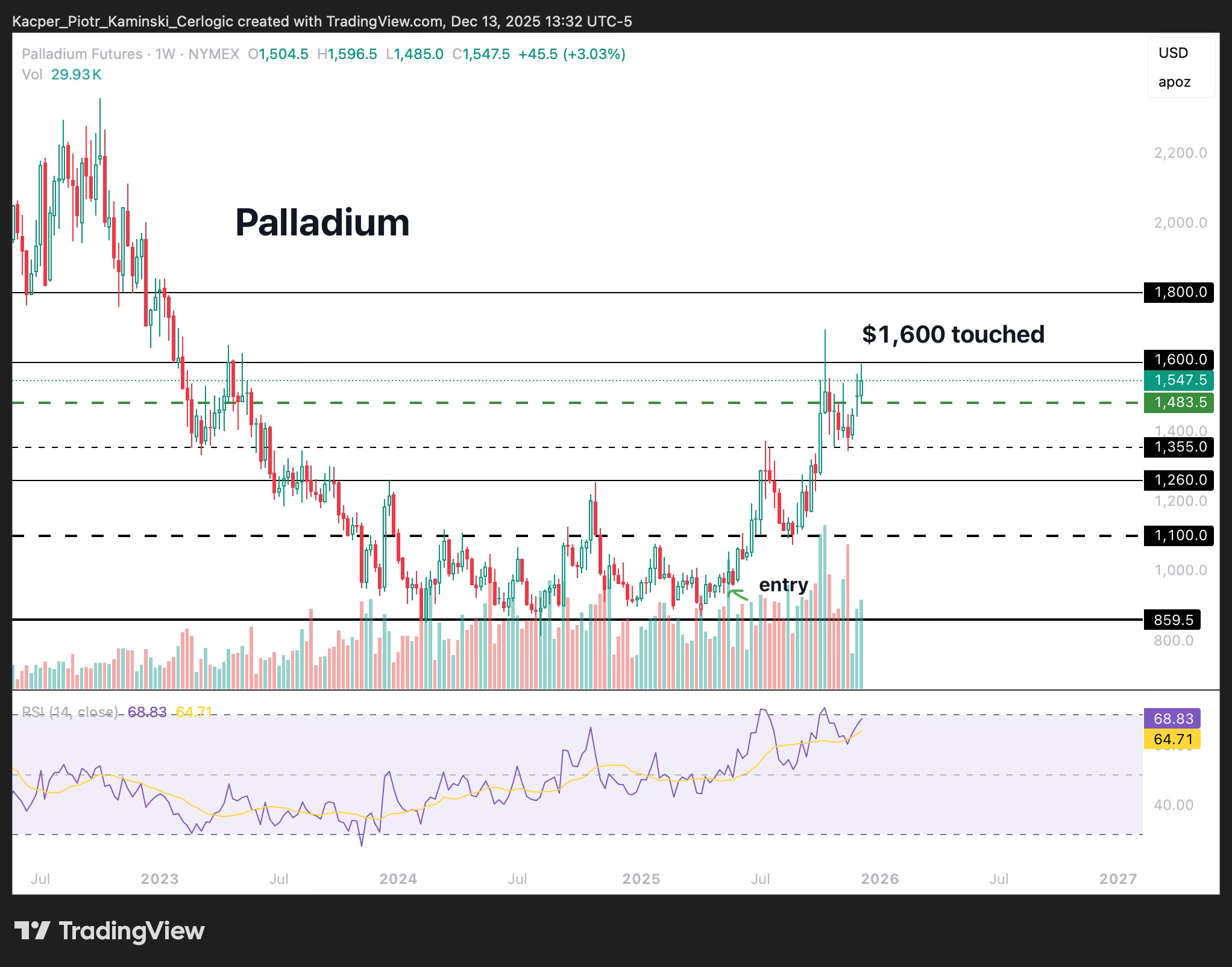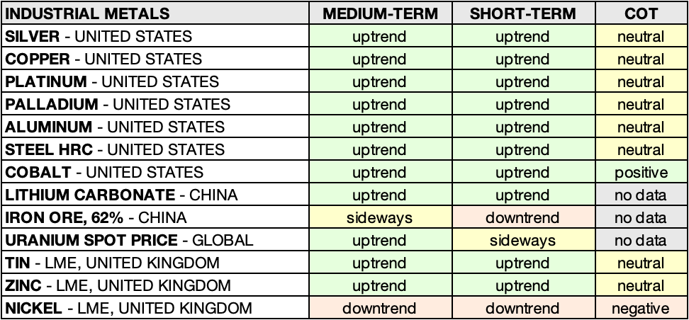 • PALLADIUM – UNITED STATES: Sideways 🟨 ➝ Uptrend 🟩
