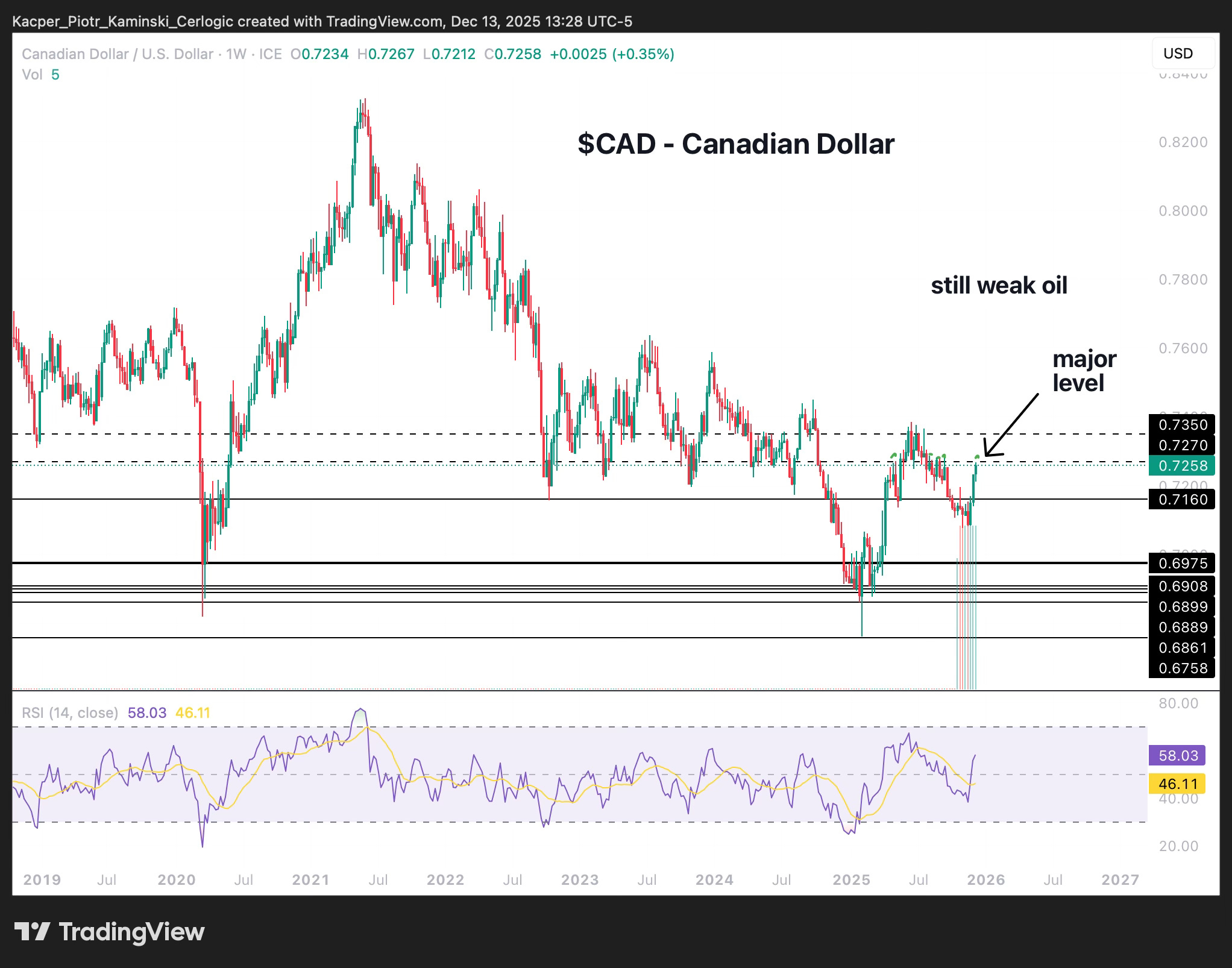 • CAD/USD – CANADIAN DOLLAR: Downtrend 🟥 ➝ Sideways 🟨
