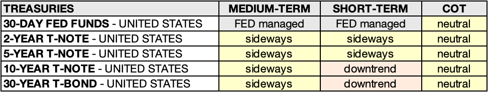 • 10-YEAR T-NOTE – UNITED STATES: Sideways 🟨 ➝ Downtrend 🟥