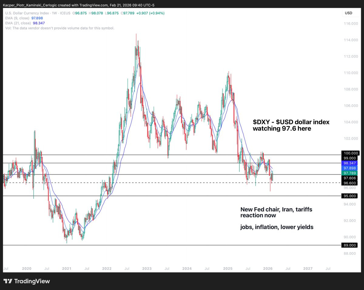• DXY – US DOLLAR INDEX: downtrend 🟥 ➝ sideways 🟨