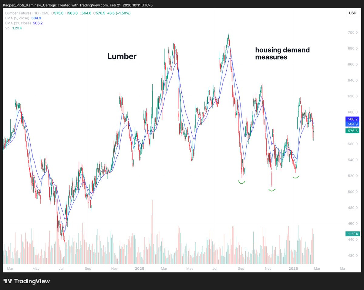 • LUMBER – UNITED STATES: downtrend 🟥 ➝ sideways 🟨