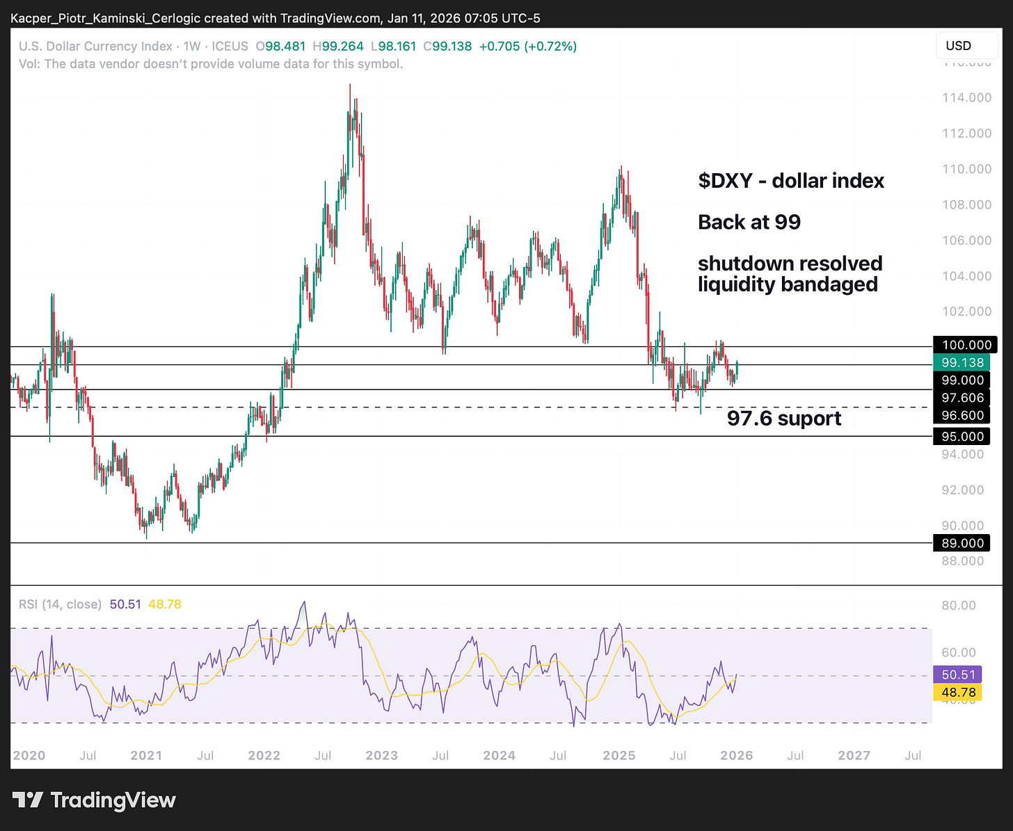 • DXY - US DOLLAR INDEX: downtrend 🟥 ➝ sideways 🟨