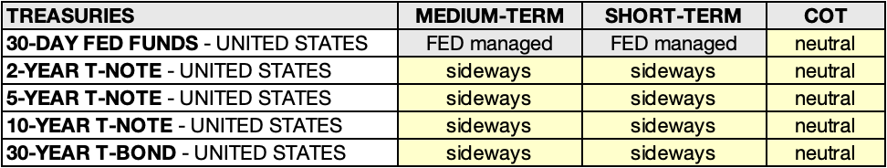 • 30-YEAR T-BOND - UNITED STATES: downtrend 🟥 ➝ sideways 🟨