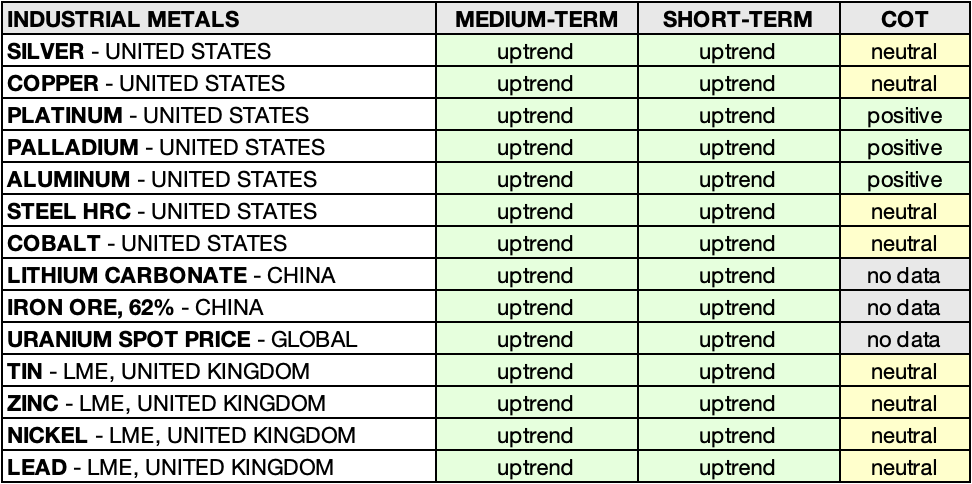 • LEAD - LME, UNITED KINGDOM: sideways 🟨 ➝ uptrend 🟩