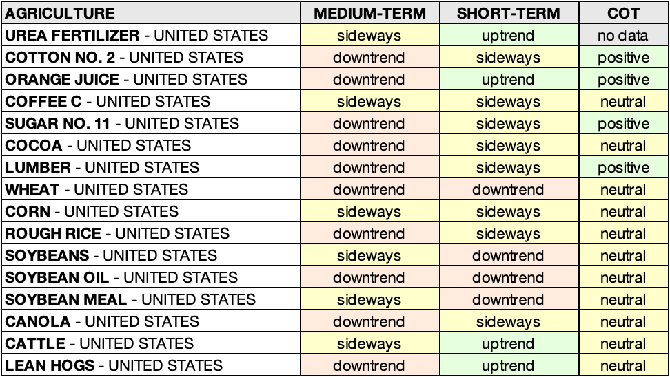 • COCOA - UNITED STATES: uptrend 🟩 ➝ sideways 🟨