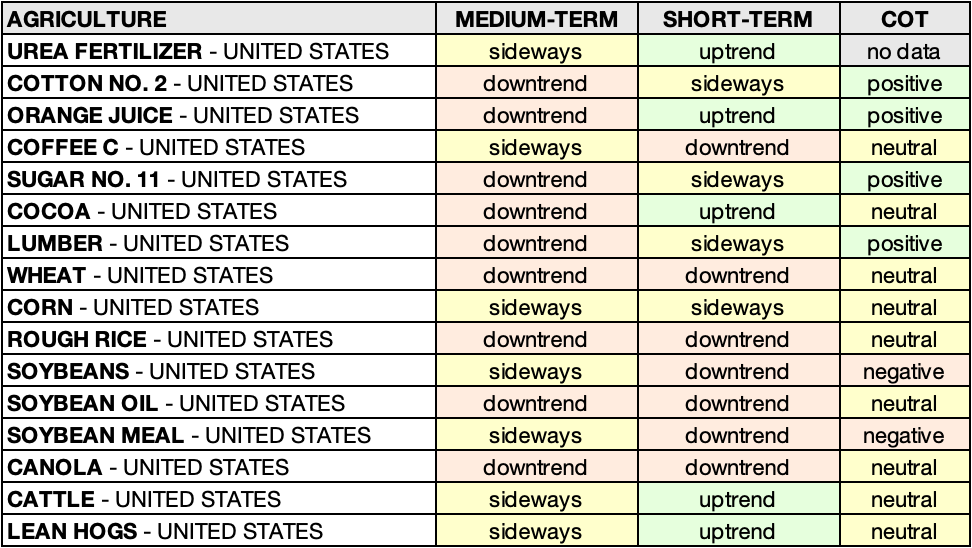 • UREA FERTILIZER - UNITED STATES: sideways 🟨 ➝ uptrend 🟩