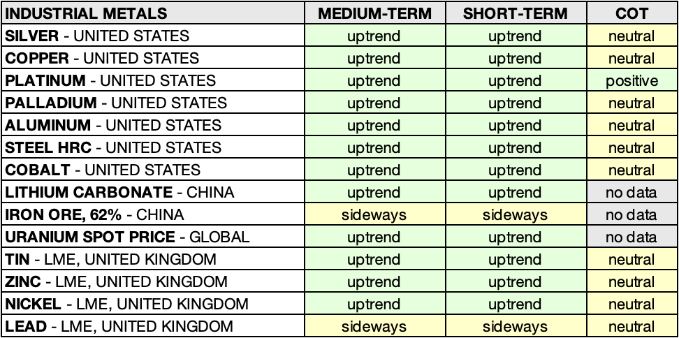 • NICKEL - LME, UNITED KINGDOM: sideways 🟨 ➝ uptrend 🟩