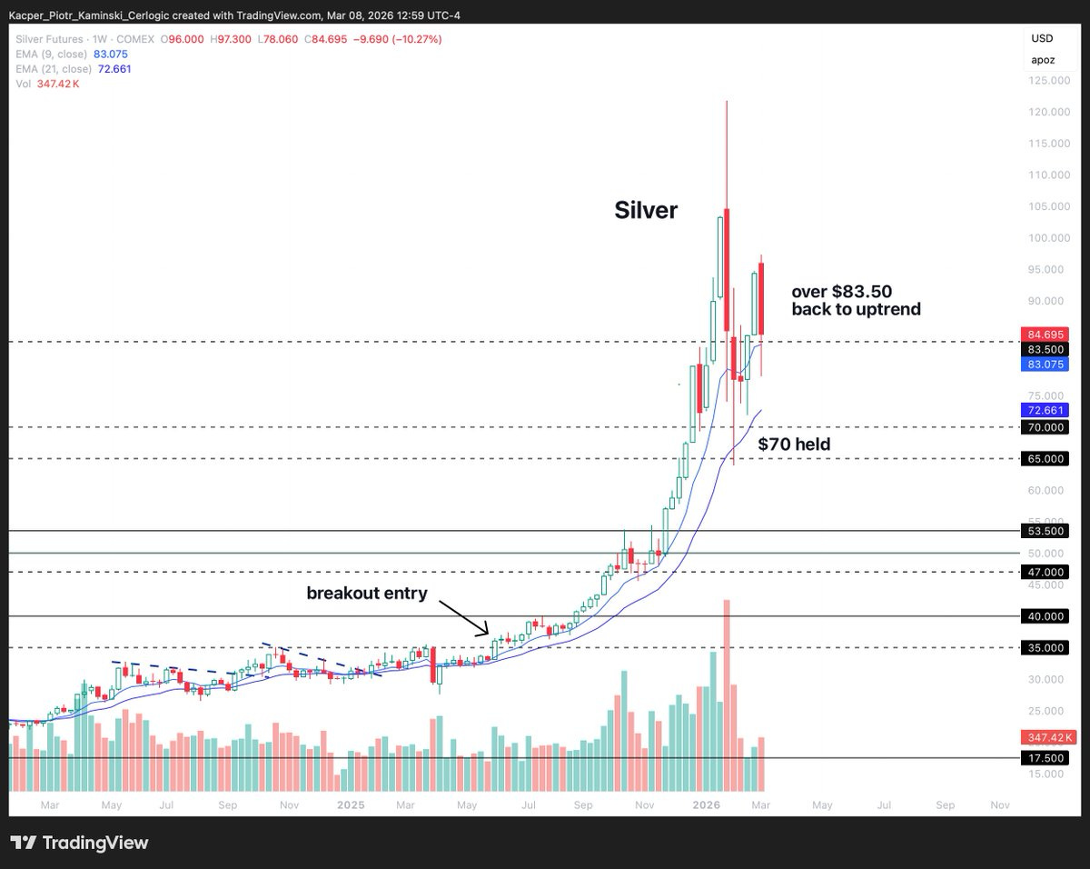 • SILVER – UNITED STATES: uptrend 🟩 ➝ sideways 🟨