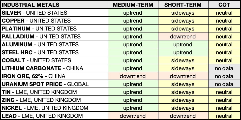 • ALUMINUM – UNITED STATES: sideways 🟨 ➝ uptrend 🟩