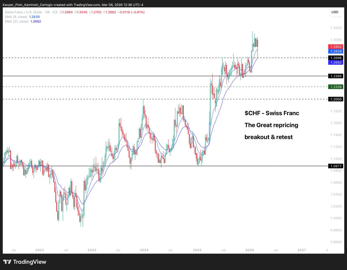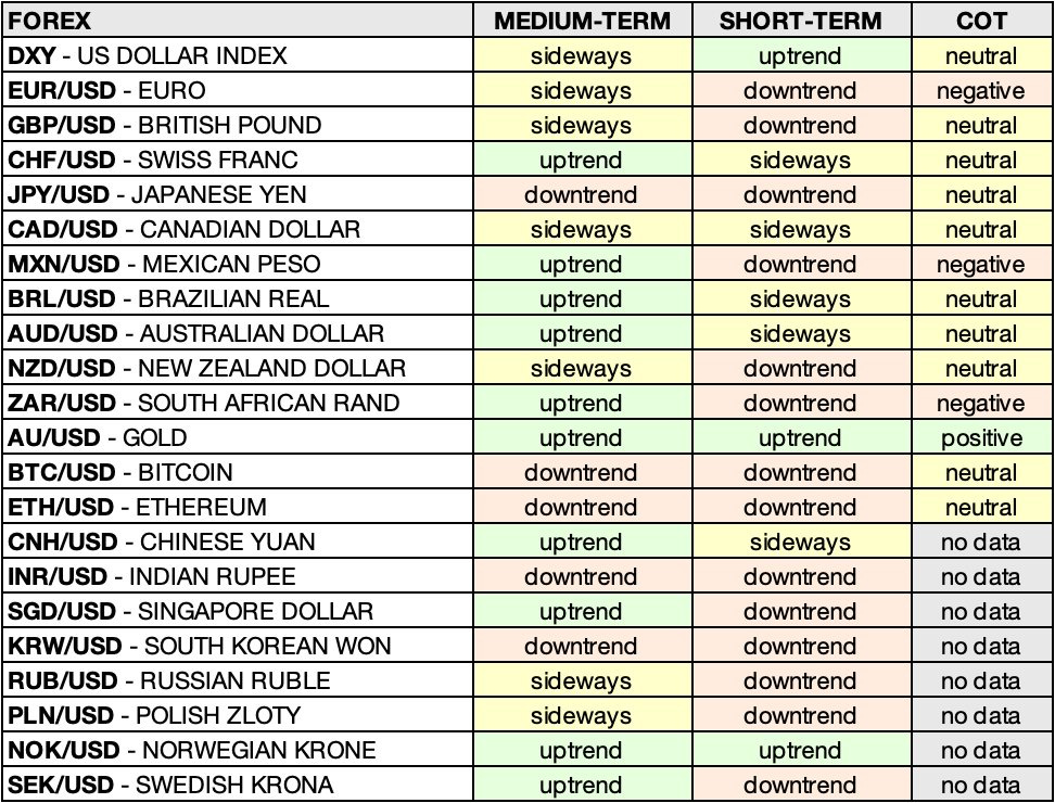 • CHF/USD – SWISS FRANC: positive 🟩 ➝ neutral 🟨