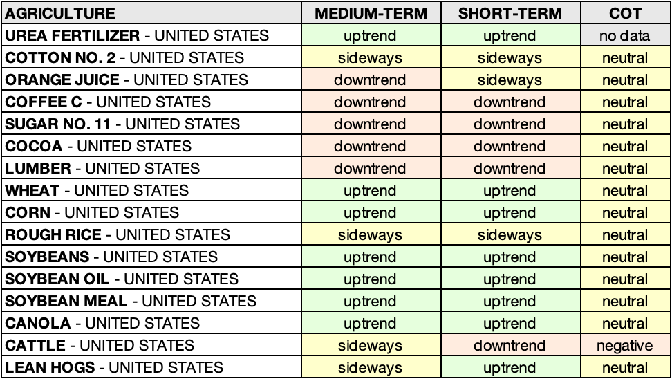 • ROUGH RICE – UNITED STATES: downtrend 🟥 ➝ sideways 🟨