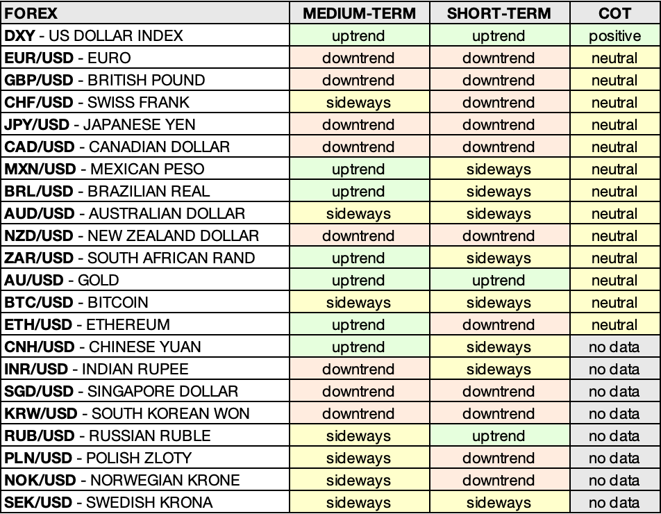 $USD $DXY $EUR $GBP $CHF $JPY $CAD $MXN $BRL $AUD $NZD $ZAR $AU $BTC $ETH $CNH $INR $SGD $KRW $RUB $PLN $NOK $SEK