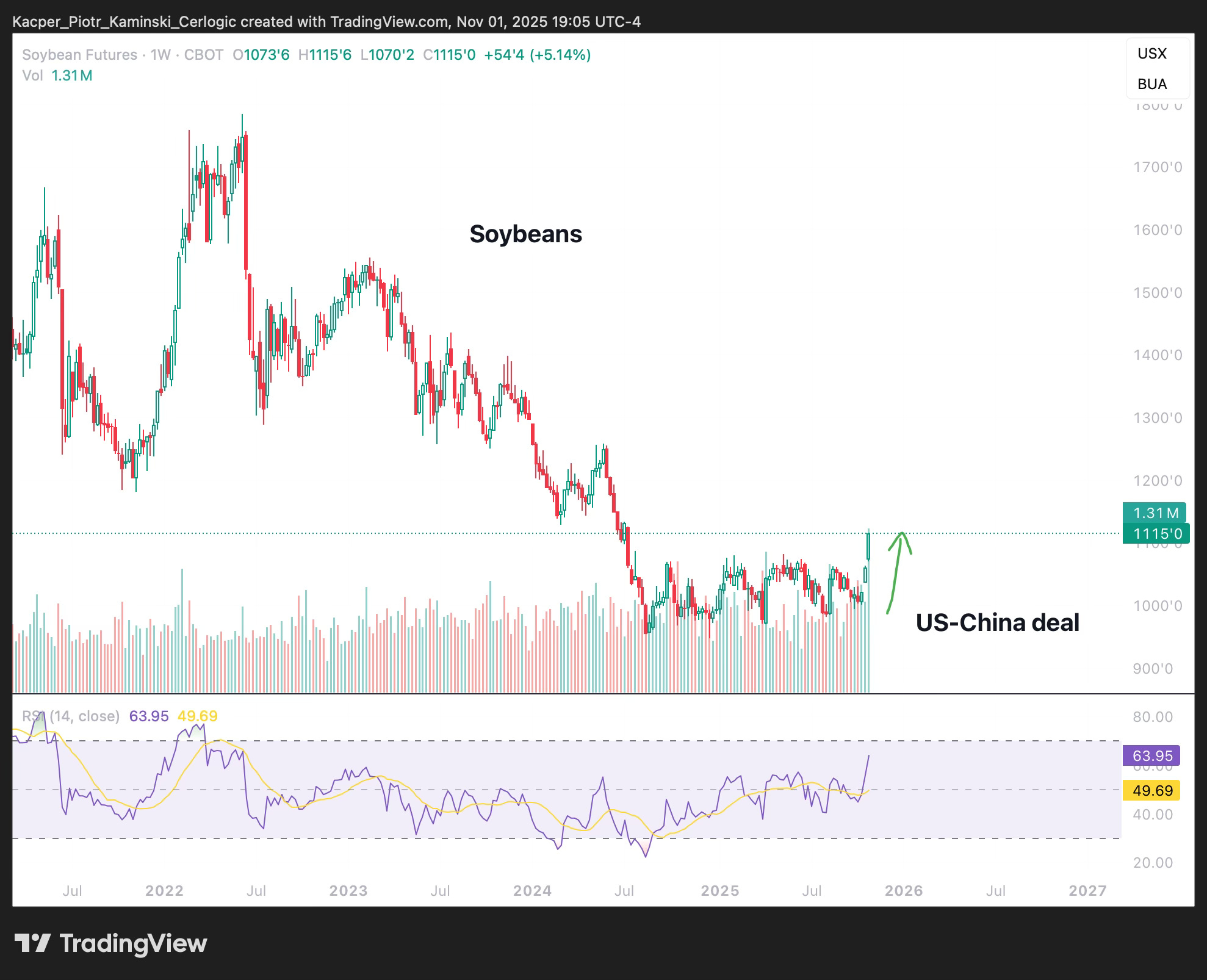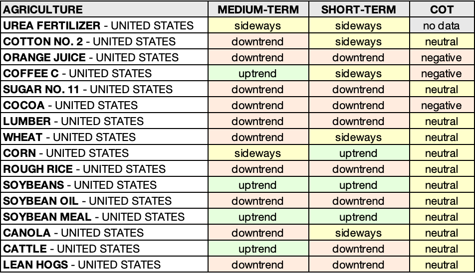 • SOYBEANS – UNITED STATES: Sideways 🟨 ➝ Uptrend 🟩