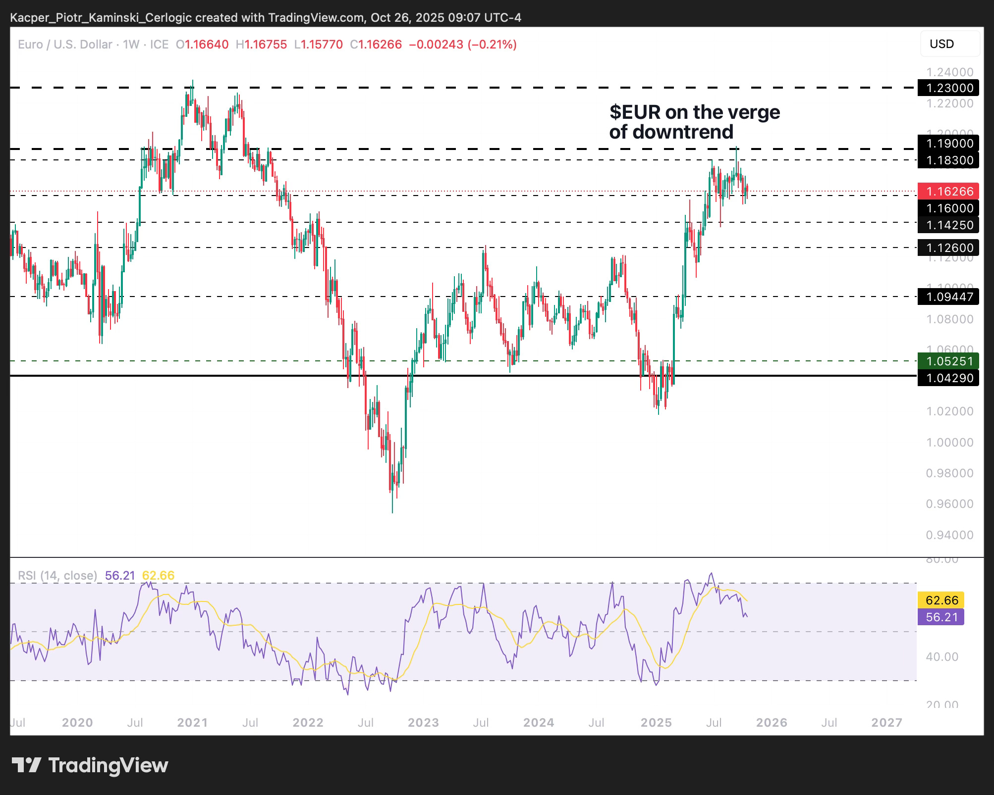 • EUR/USD – EURO: Sideways 🟨 ➝ Downtrend 🟥