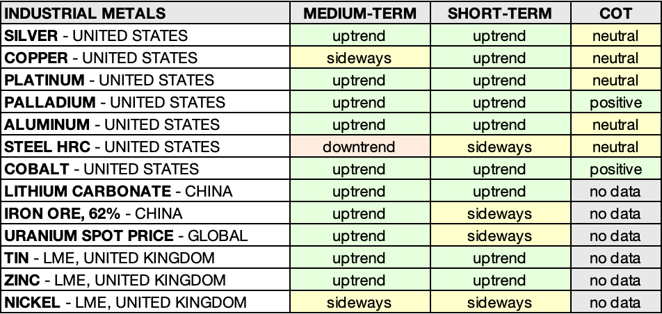 • LITHIUM CARBONATE – CHINA: Sideways 🟨 ➝ Uptrend 🟩