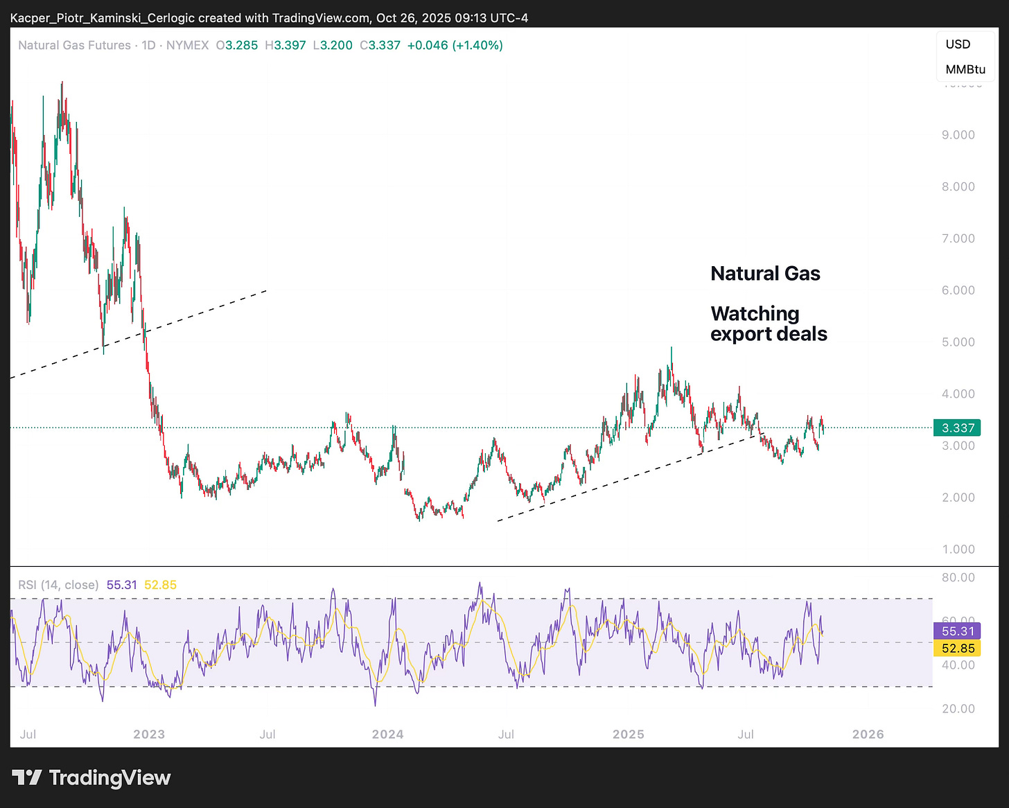 • NATURAL GAS – UNITED STATES: Downtrend 🟥 ➝ Sideways 🟨
