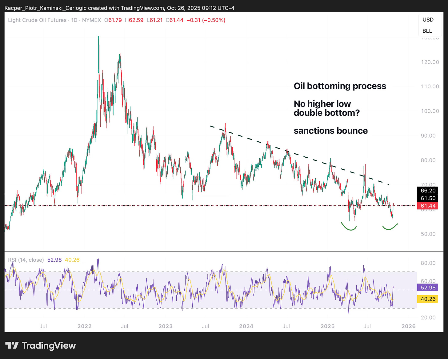 • CRUDE OIL – UNITED STATES: Downtrend 🟥 ➝ Sideways 🟨