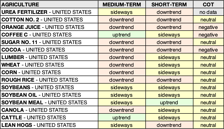• SOYBEANS – UNITED STATES: Negative 🟥 ➝ Neutral 🟨