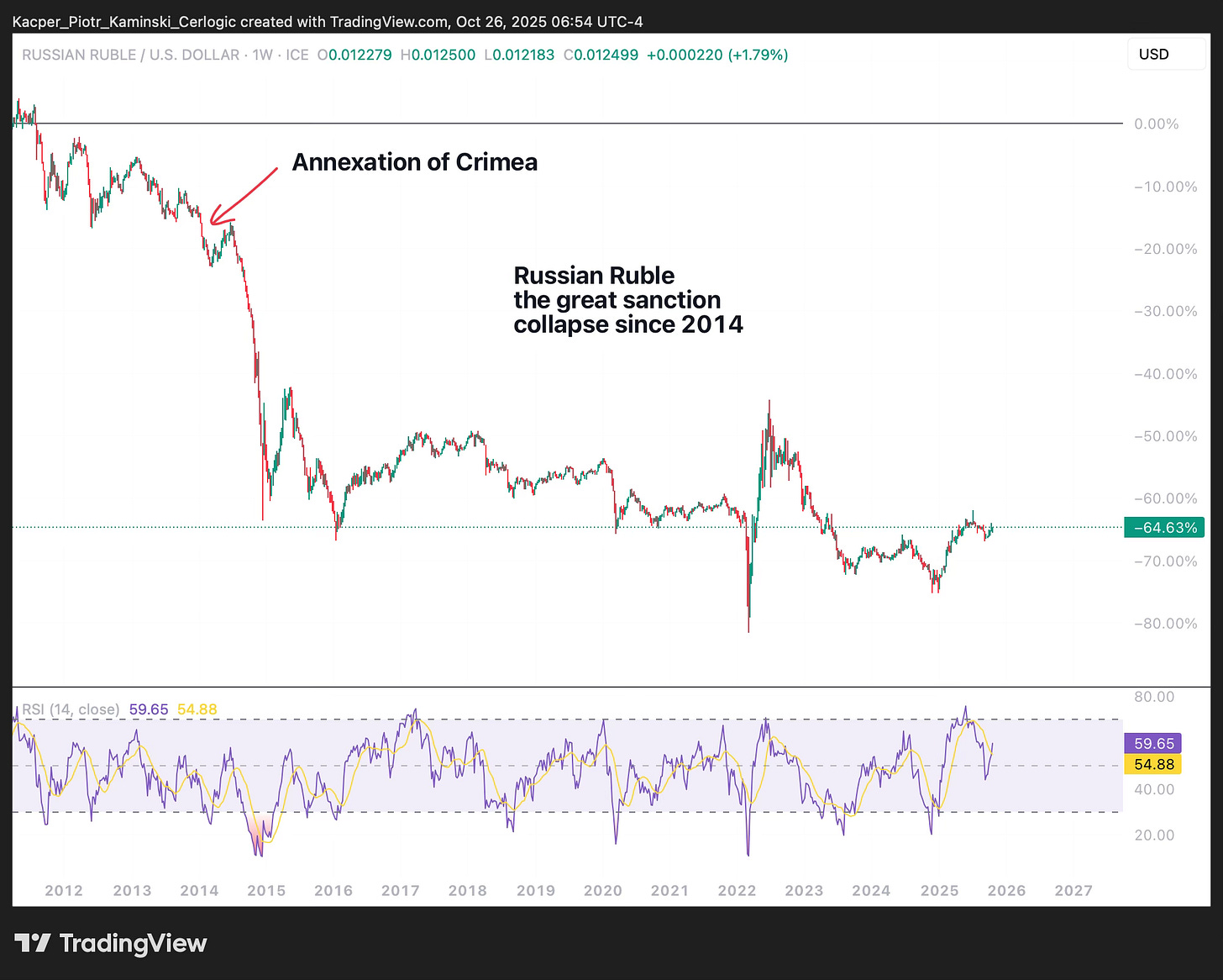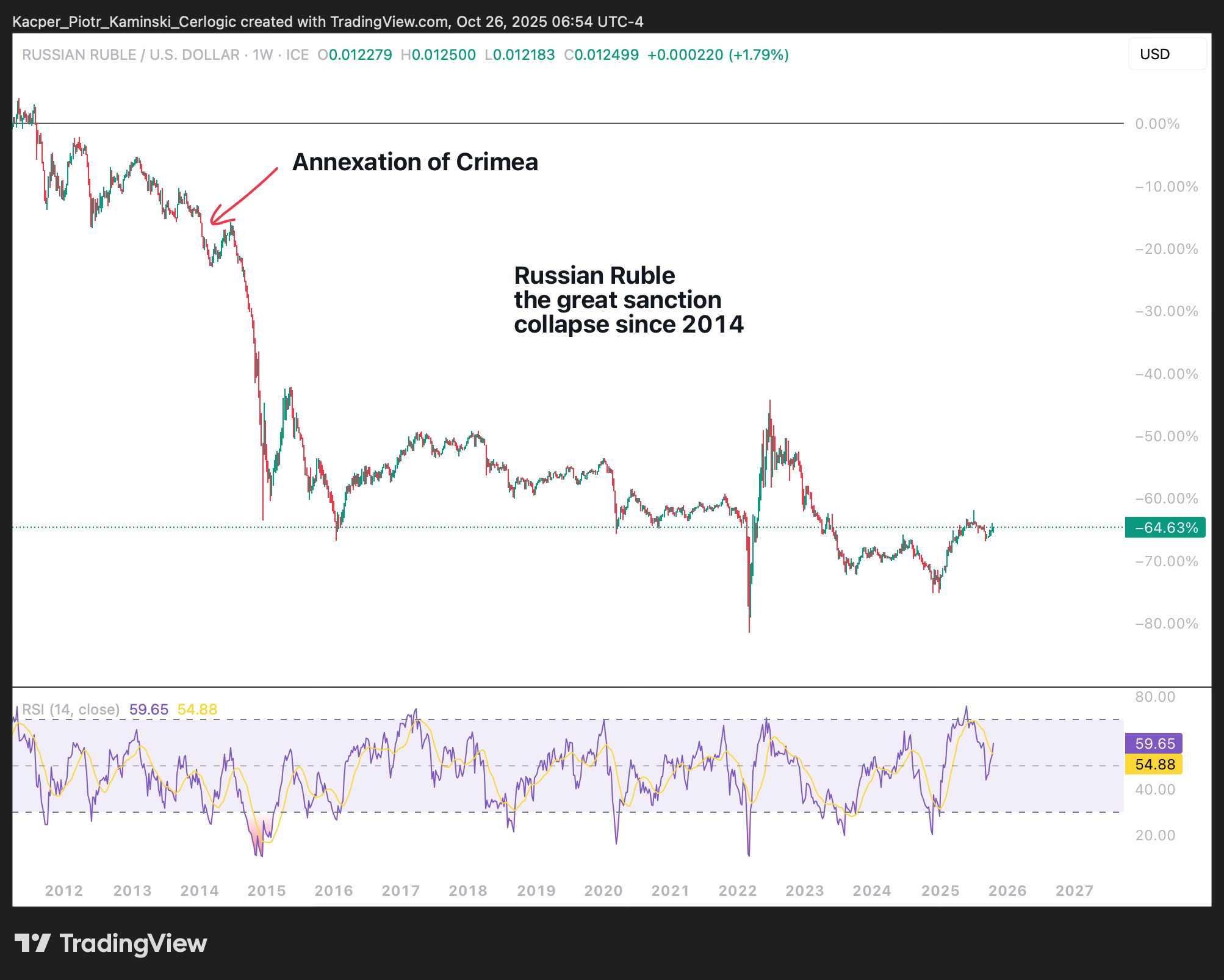 • RUB/USD – RUSSIAN RUBLE: Sideways 🟨 ➝ Uptrend 🟩