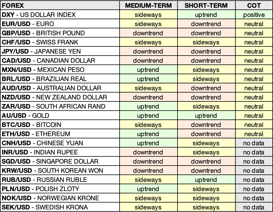 $USD $DXY $EUR $GBP $CHF $JPY $CAD $MXN $BRL $AUD $NZD $ZAR $AU $BTC $ETH $CNH $INR $SGD $KRW $RUB $PLN $NOK $SEK
